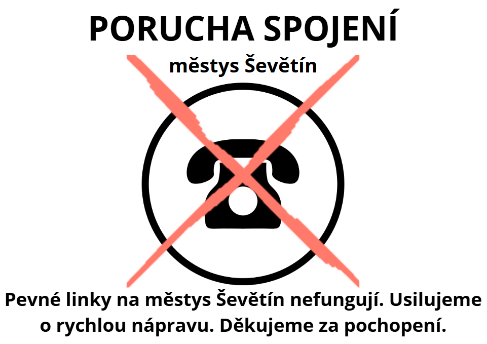 Pevné linky na městys Ševětín nefungují. Usilujeme o rychlou nápravu. Děkujeme za pochopení.