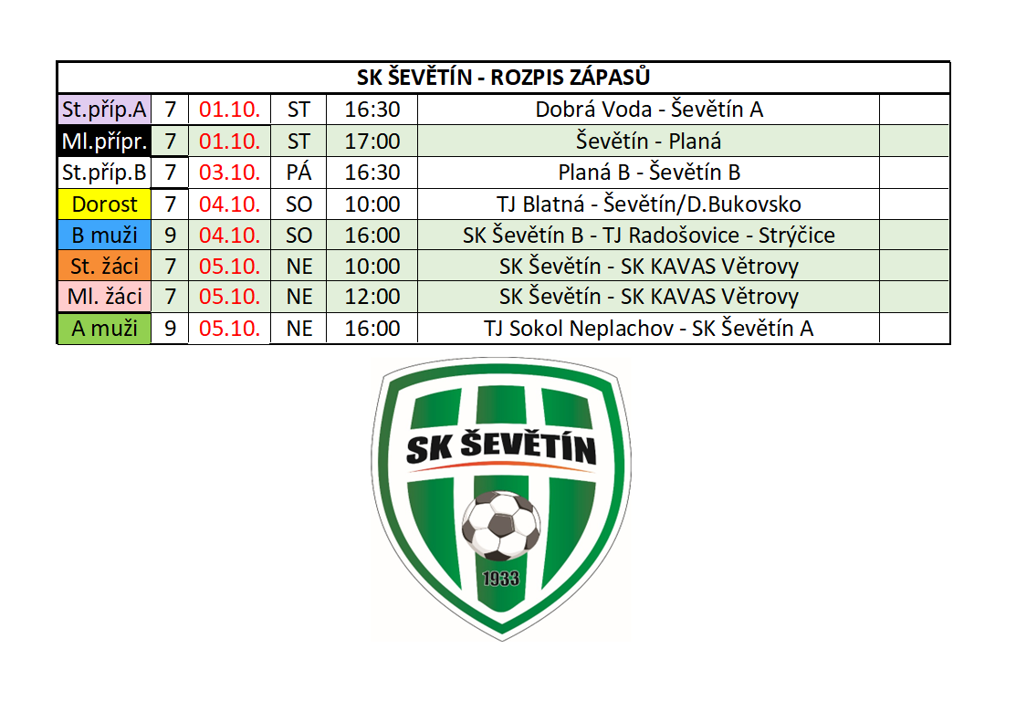 Rozpis fotbalových zápasů pro tento týden. Přijďte zafandit a podpořit hráče.