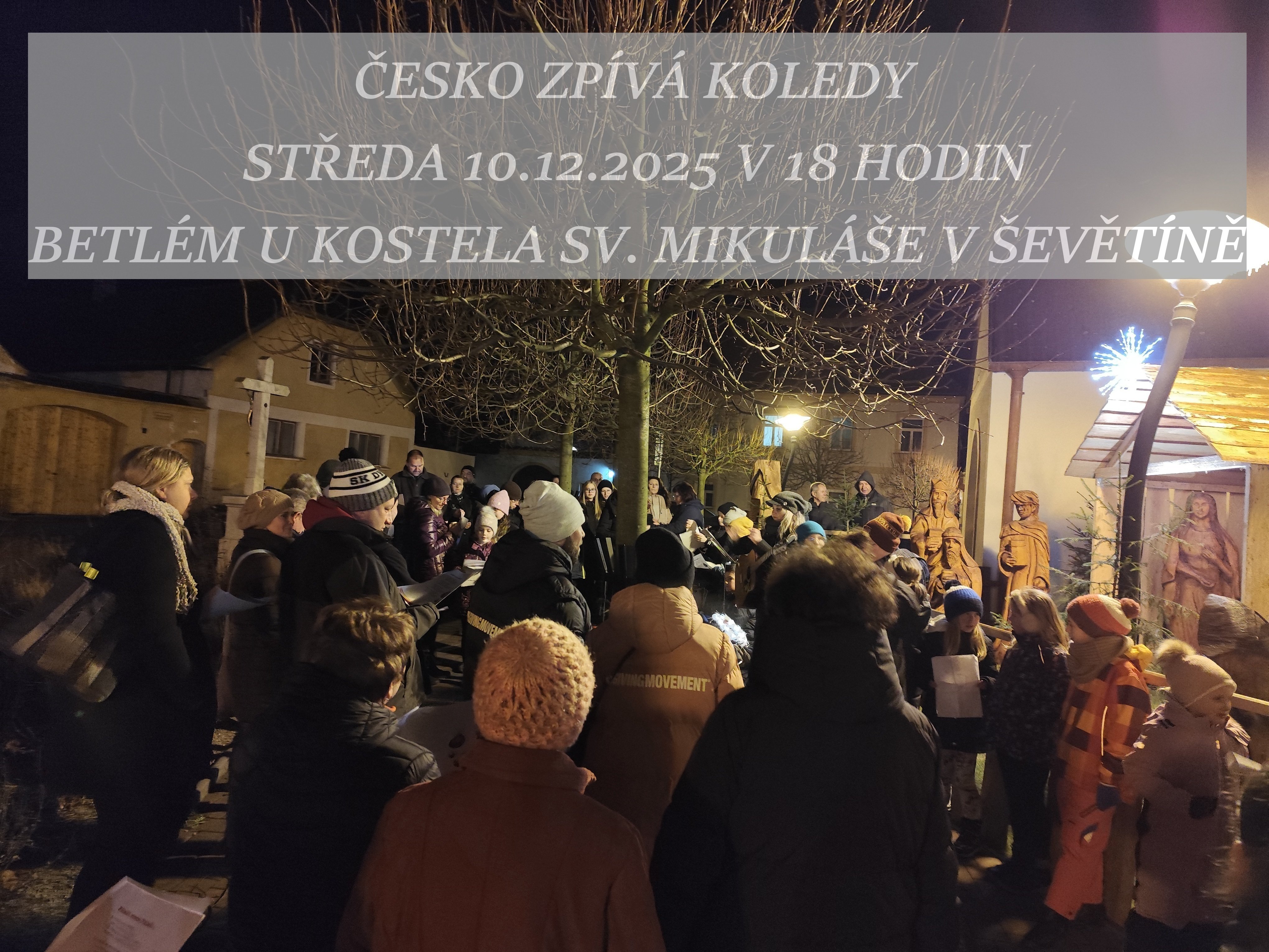 Římskokatolická farnost a Blaťácký soubor Ševětín Vás srdečně zvou v sobotu 20. prosince 2025 v 19:00 hodin na koledu k jesličkám do kostela sv. Mikuláše v Ševětíně. Přijďte otevřít svá srdce této předvánoční době.