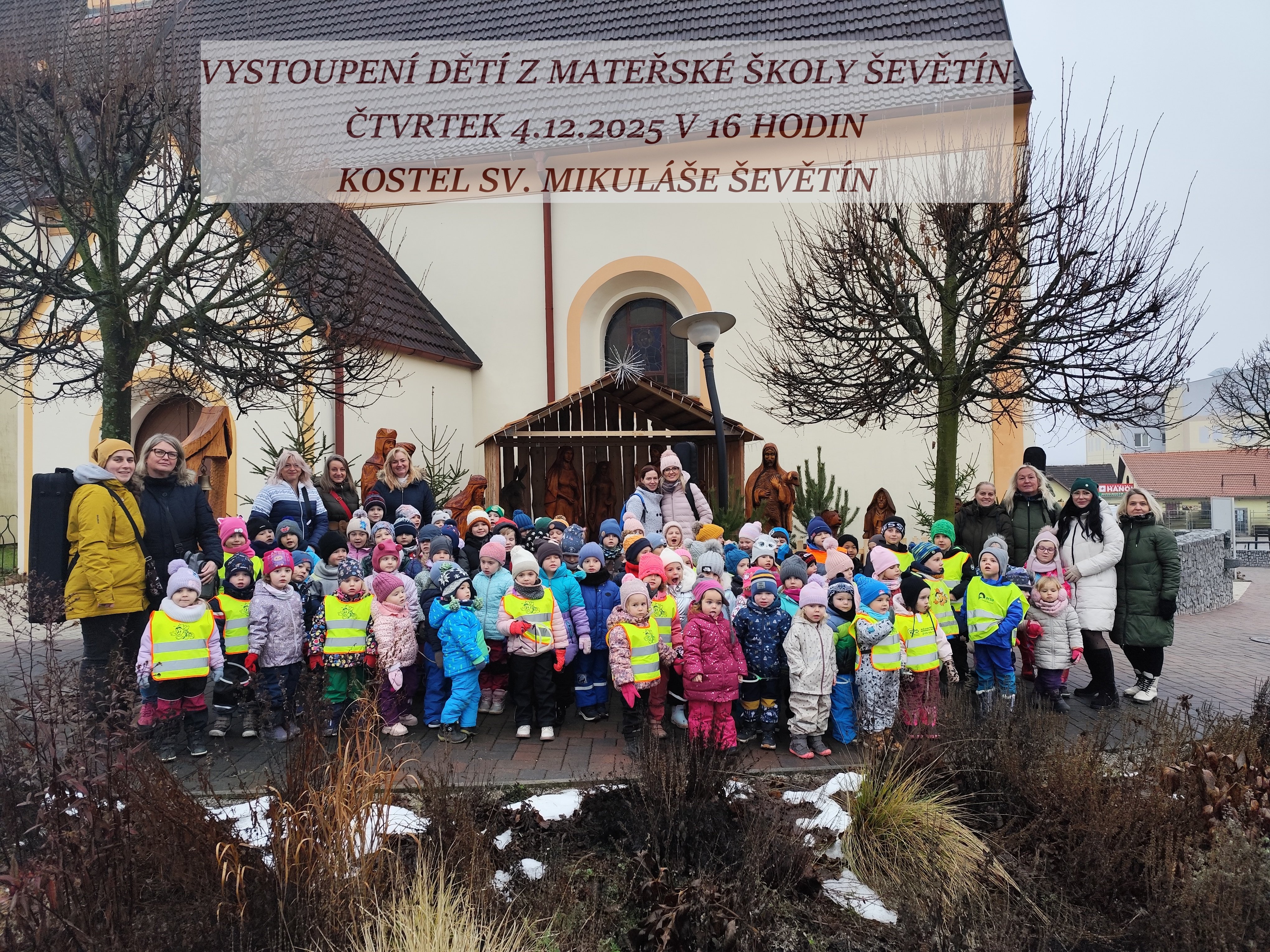 Děti z mateřské školy společně s paní učitelkami Vás srdečně zvou, dnes 4. prosince v 16.00 hodin, na vánoční vystoupení v místním kostele sv. Mikuláše.