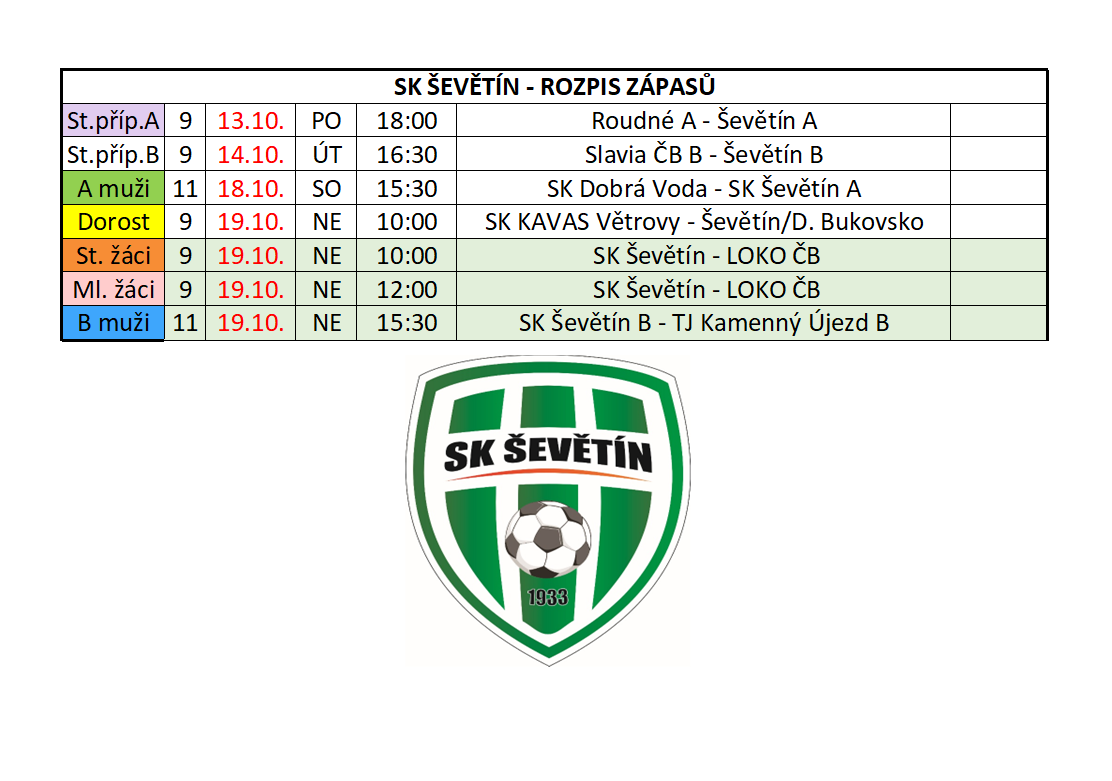 Rozpis fotbalových zápasů pro tento týden. Přijďte zafandit a podpořit hráče.