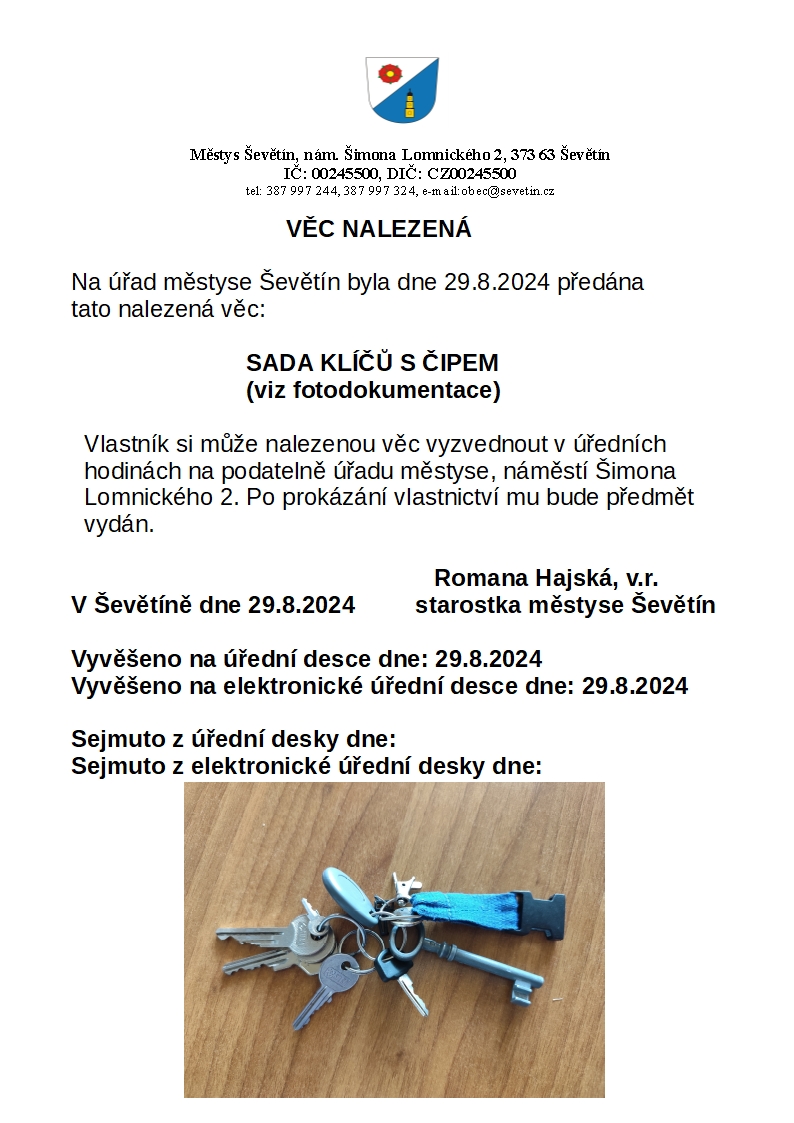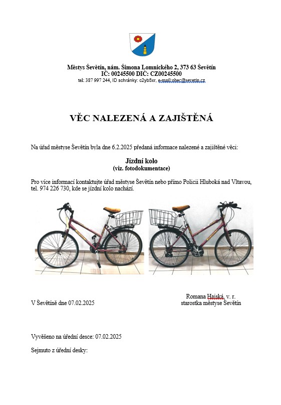| Vyvěšeno: 02.01.2025 | Bude sejmuto: |