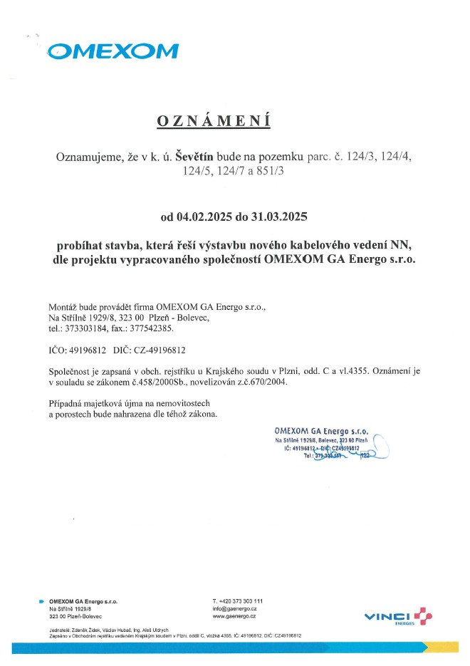 Společnost EG.D upozorňuje vlastníky či uživatele nemovitostí (pozemků) na odstranění nebo ořez ohrožujících bezpečný a spolehlivý provoz elektrického distribučního zařízení, viz příloha.