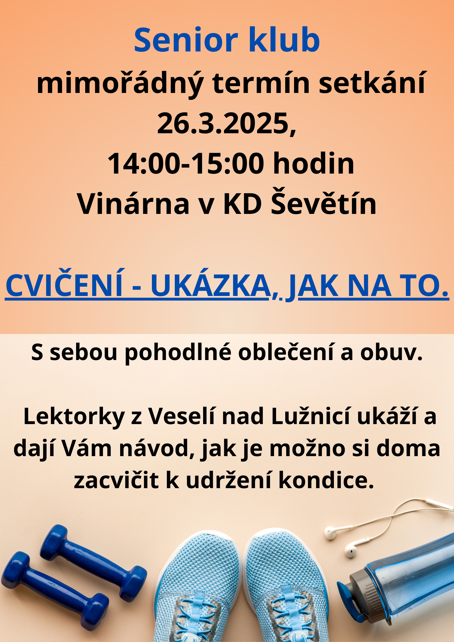 DNEŠNÍ SENIOR KLUB SE NEKONÁ