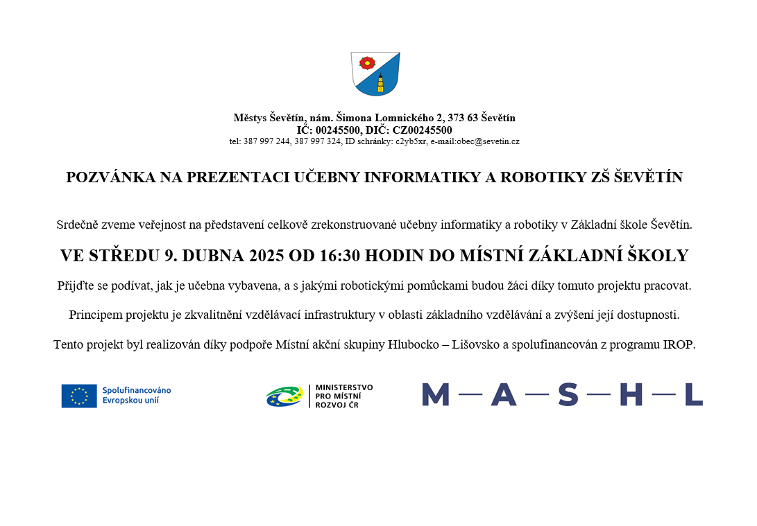 POZVÁNKA NA ZASEDÁNÍ ZASTUPITELSTVA MĚSTYSE ŠEVĚTÍN - 16. 02. 2026