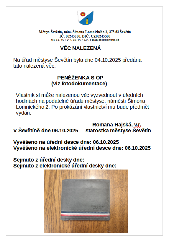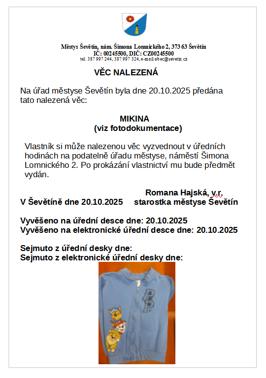 | Vyvěšeno: 01.10.2025 | Bude sejmuto: |
