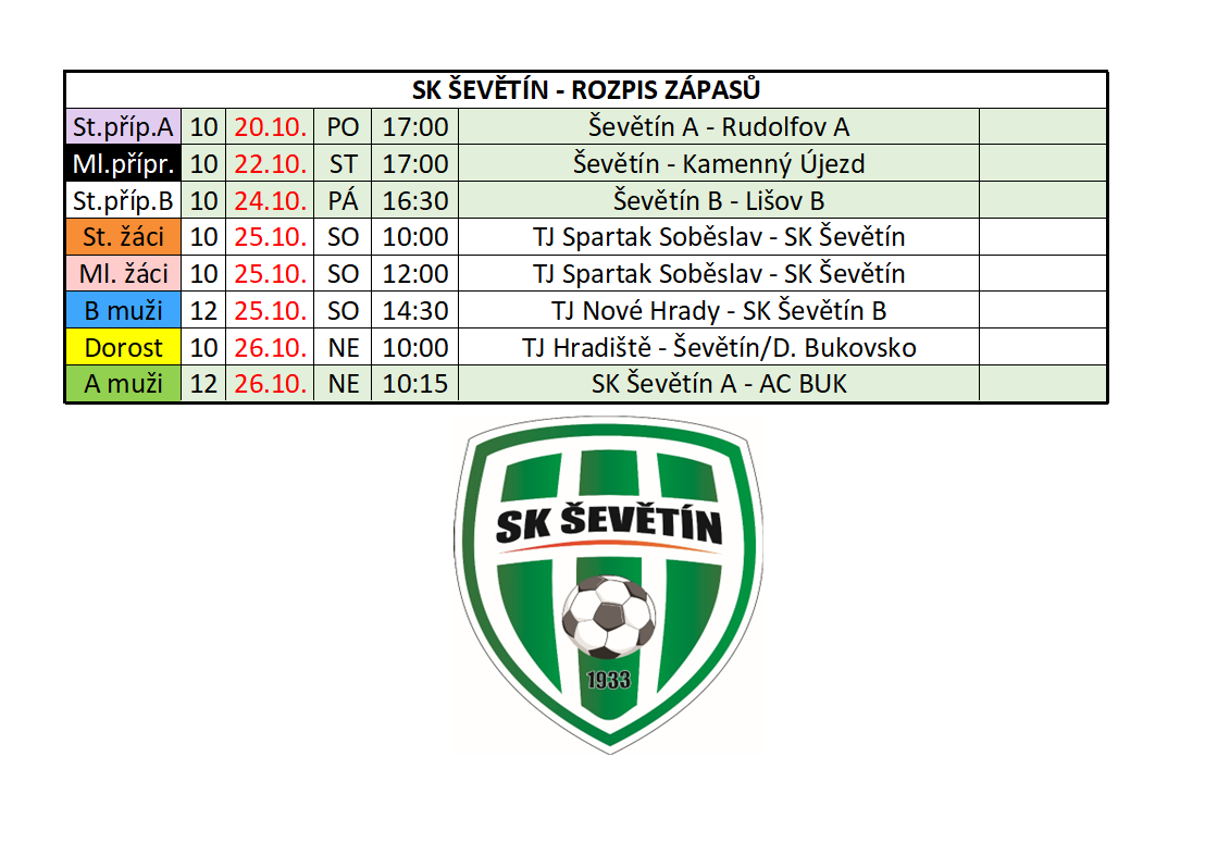 SK ŠEVĚTÍN - ROZPIS ZÁPASŮ