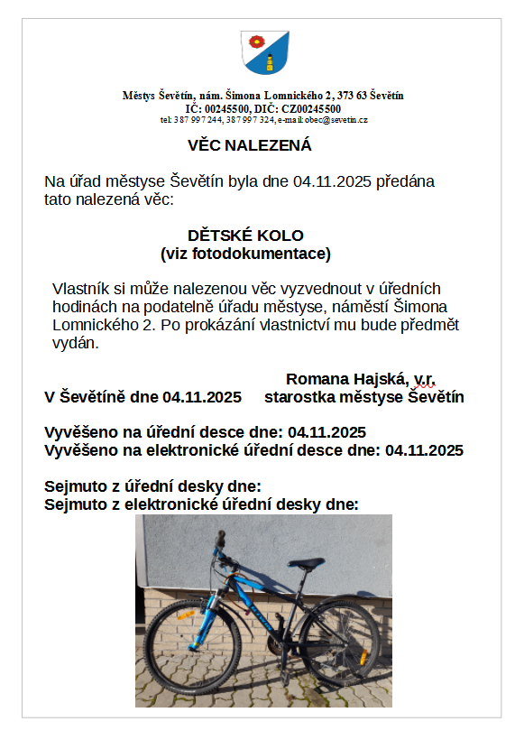 | Vyvěšeno: 04.11.2025 | Bude sejmuto: |
