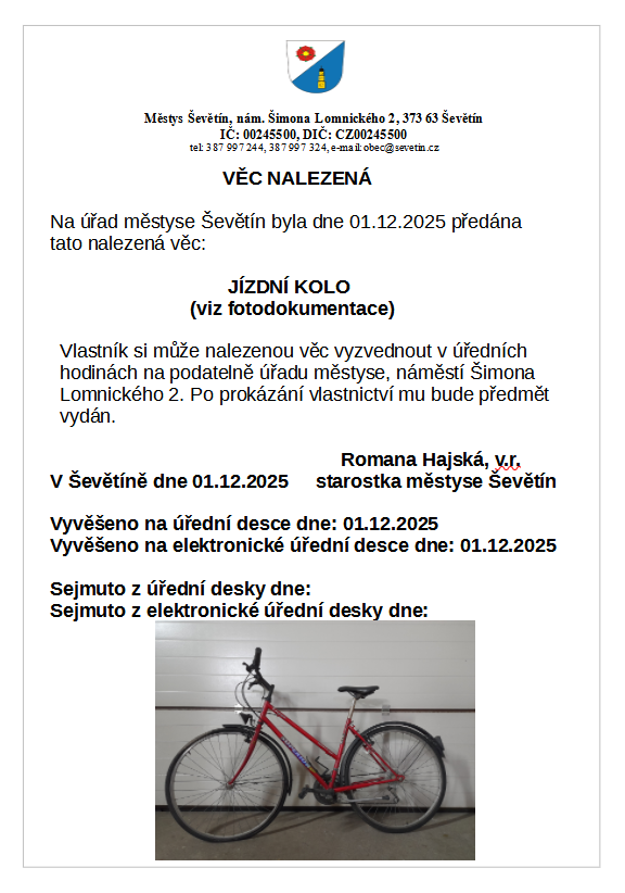 | Vyvěšeno: 11.12.2023 | Bude sejmuto: |