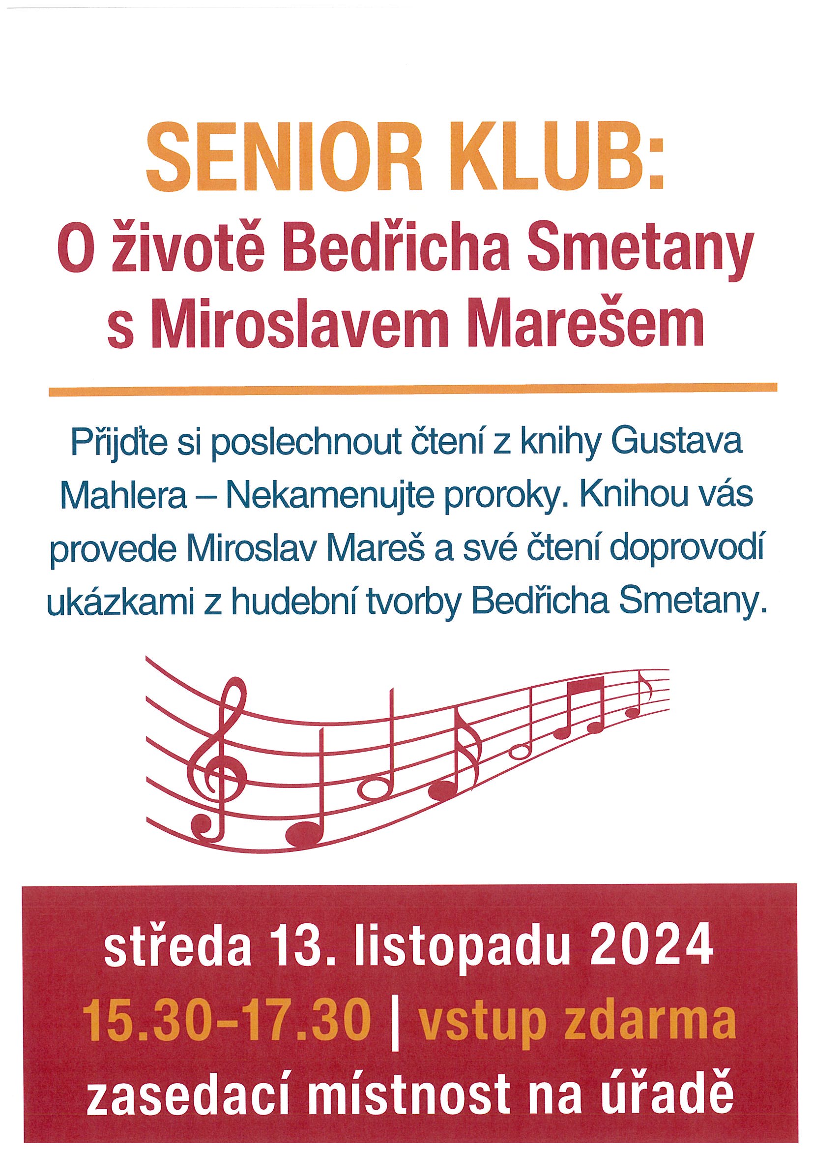 středa 13. 11. 2024 od 15:30 do 17:30 v zasedací místnosti na úřadě